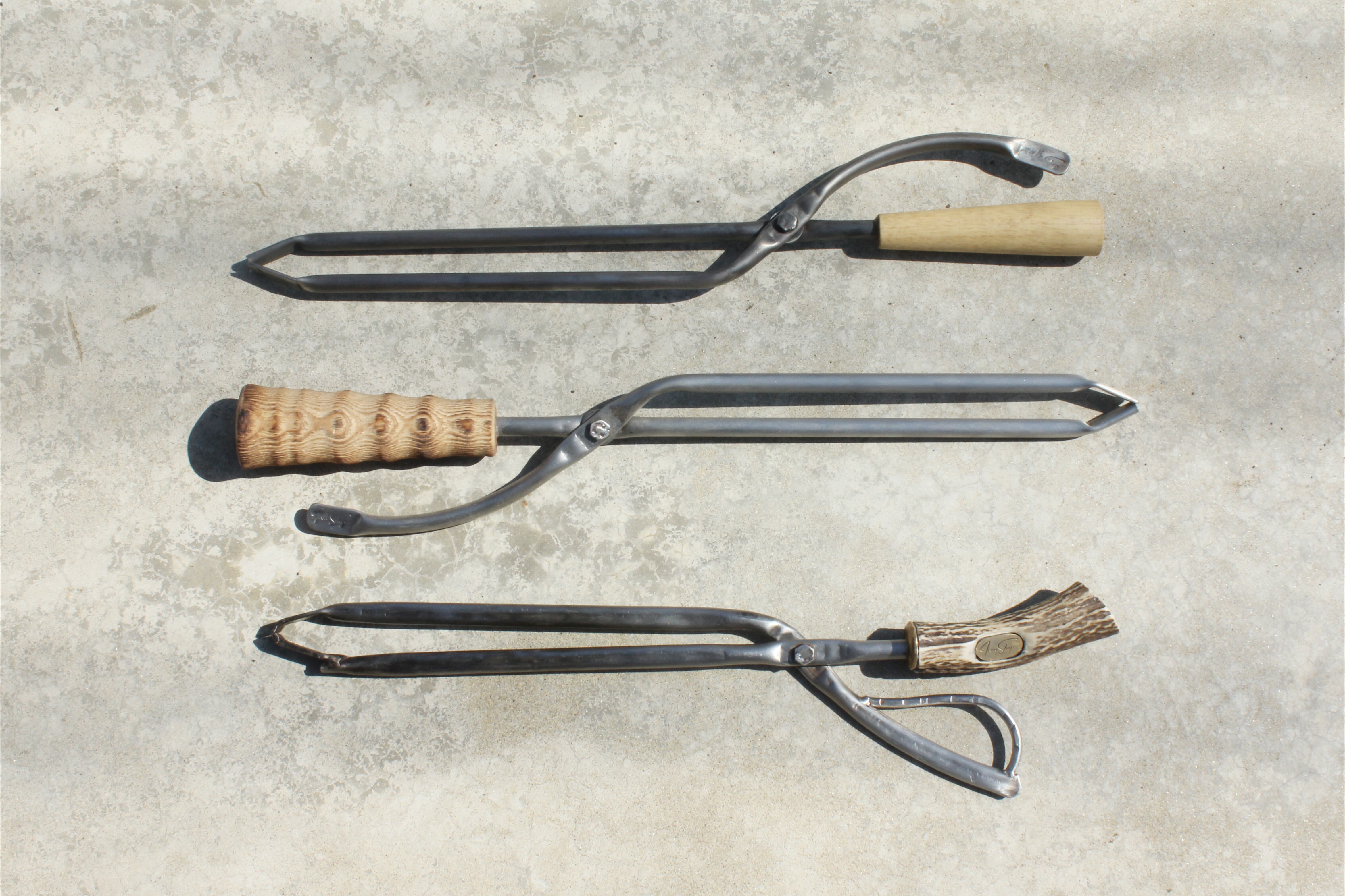 柄が杉材、楢材のブラスタートングもございます。
