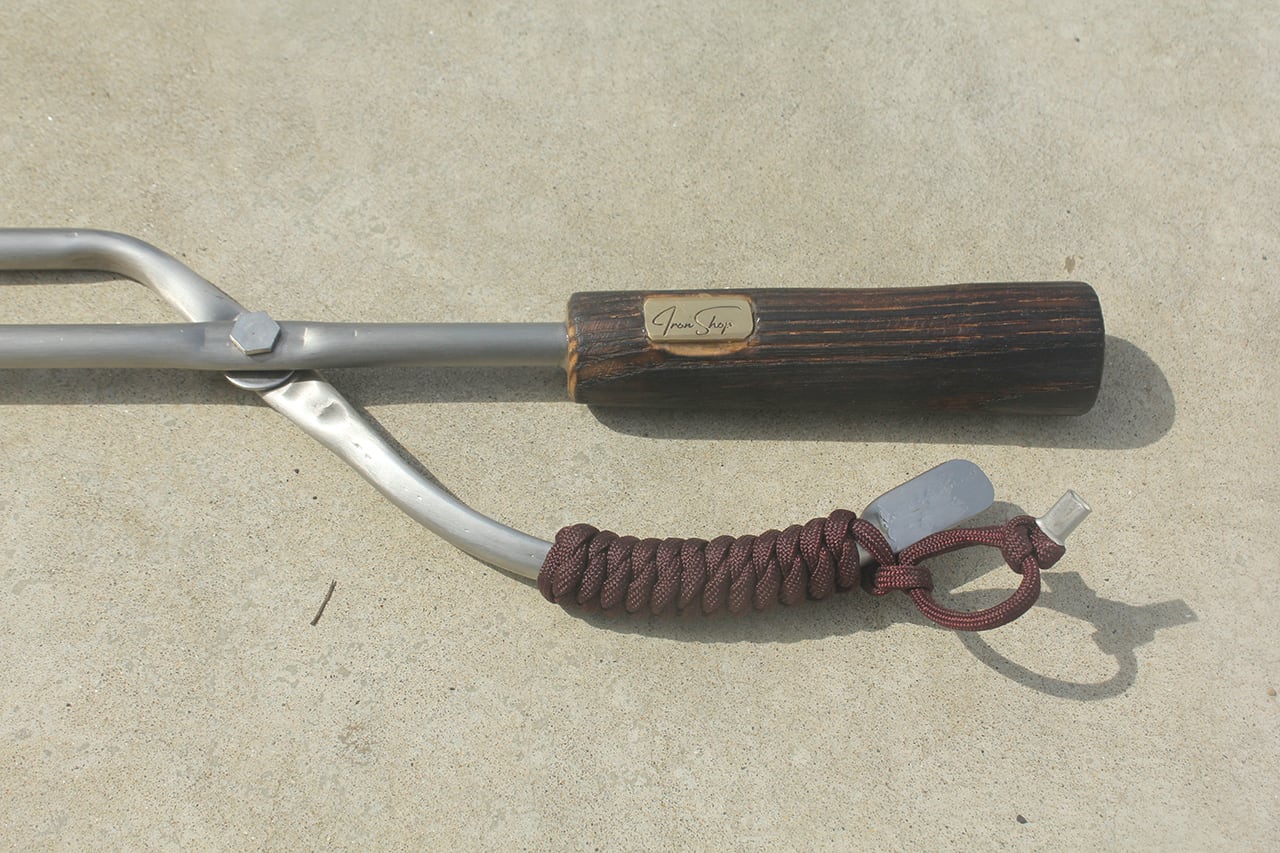 薪挟みと火吹き棒の2WAYでお使いいただける、重量わずか170gのブラスタートングの、持ち手にパラコードを巻いたバージョンです。